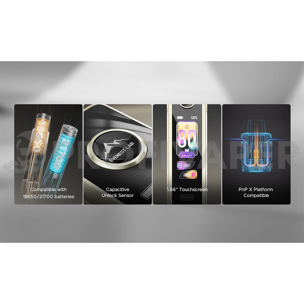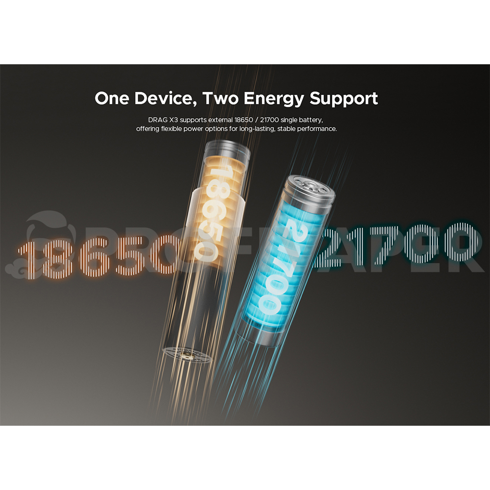 VOOPOO Drag X3 je výkonný a elegantný pod mód, ktorý spája špičkovú technológiu s precíznym spracovaním. Telo zo zinkovej zliatiny dopĺňa mäkký kožený panel, vďaka ktorému sa zariadenie skvele drží a získava osobitejší vzhľad. Drag X3 ale ponúka nielen štýl, ale aj výdrž - podporuje totiž vymeniteľné batérie typu 18650 alebo 21700 (nie sú súčasťou balenia), ktoré vám zaručujú dlhú životnosť a stabilný výkon aj pri vyššom zaťažení.